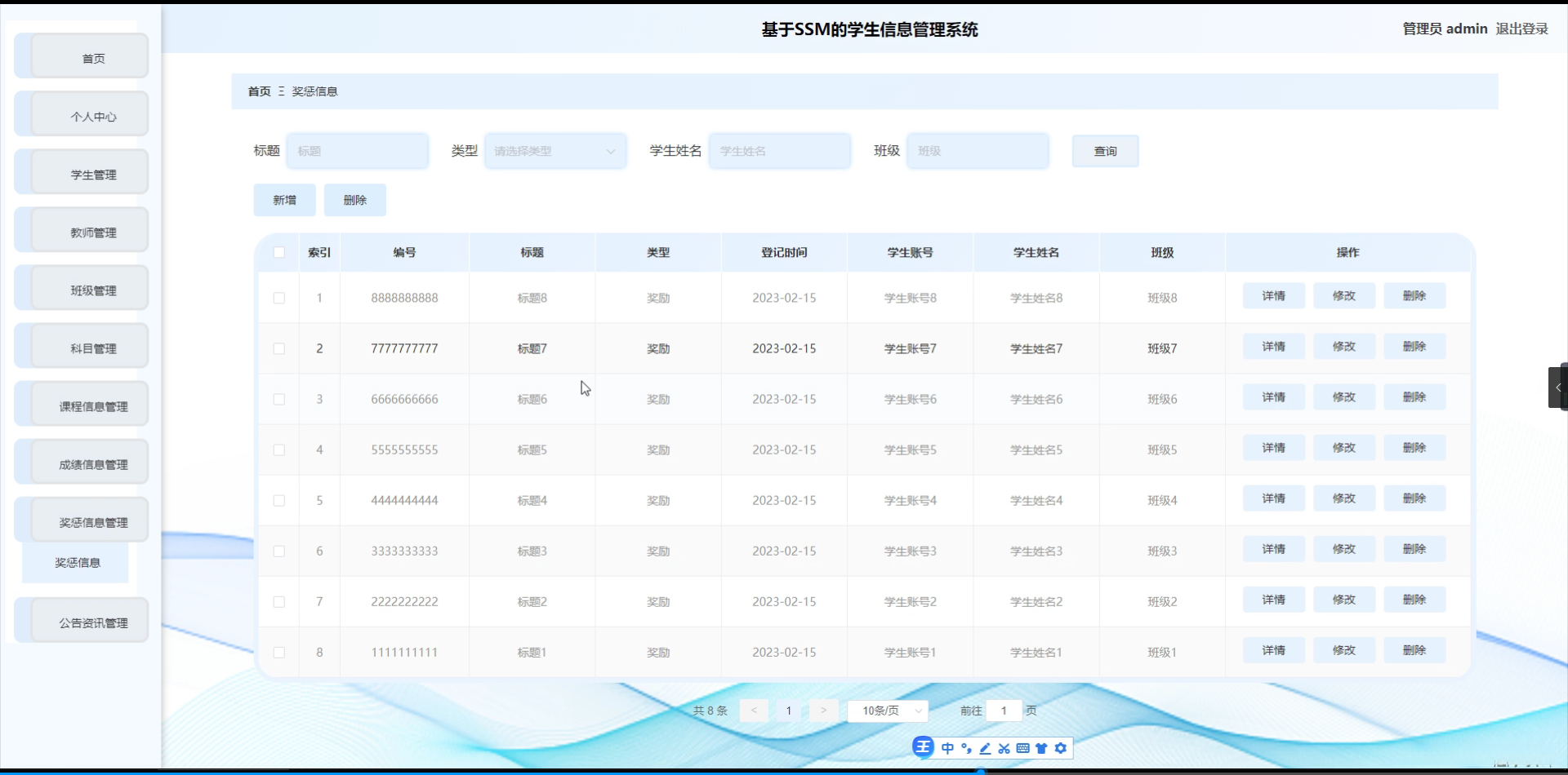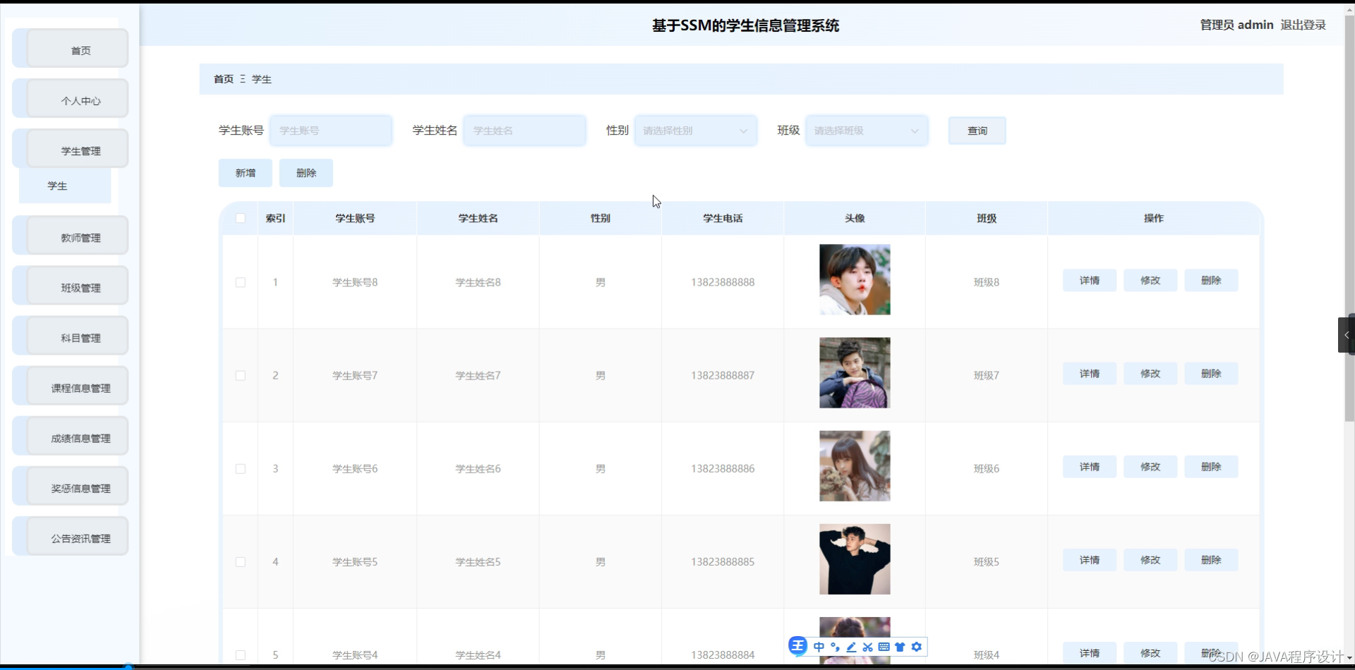 开发学生信息管理系统对学校的管理活动意义重大。首先,该系统有助于提高学生信息管理的效率。借助自动化数据处理与查询功能,系统能够快速准确地处理大量学生的各项事务性工作内容,并且有效降低了人工操作所需的时间以及错误率。此外,在保障信息安全方面采取了多项技术措施以确保敏感数据的安全性与完整性;通过加密技术和权限控制等措施实现对学生个人隐私的有效保护。最后,在提升学校整体工作效率方面实现了显著的价值提升;通过对学生成绩、出勤记录等关键指标进行分析研究,在优化教学安排的同时也能更好地帮助每位学生的个性化成长与发展需求得到满足