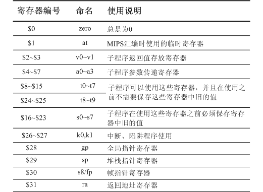MIPS32处理器- 通用寄宿 register 0~31(32位)。