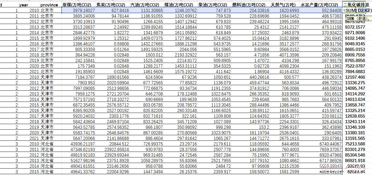 2010-2021年各省碳排放测算数据(含原始数据+计算过程+结果)
