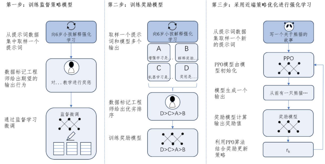 开发监督策略模型:采用监督学习方法对预训练语言模型进行开发,并通过赋予特定奖励和惩罚来引导AI模型根据输入生成相应的输出结果。