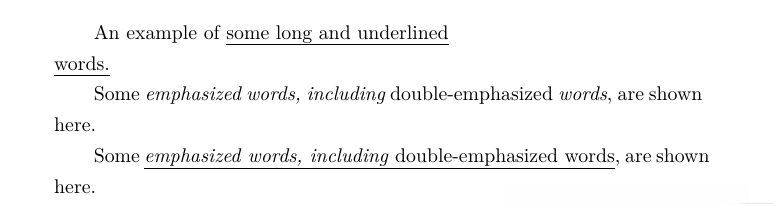 还可以调用宏包ulem,它提供的\uline命令能够轻松生成自动换行的下划线